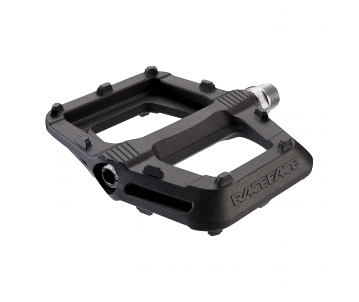 Los Pedales Race Face Ride presentan una plataforma delgada de compuesto de nylon, ofrecen un diseño plano, ligero y con buen grip.