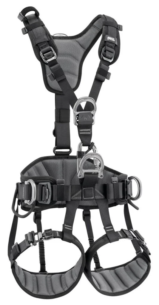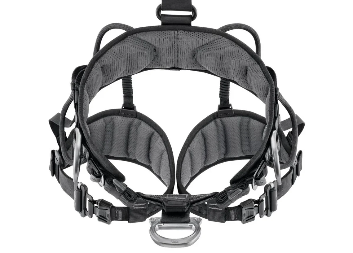 – Todas las zonas de contacto, tirantes, cinturón y perneras, con espuma preformada y acolchada de tejido transpirable, permiten al usuario evolucionar y trabajar confortablemente.