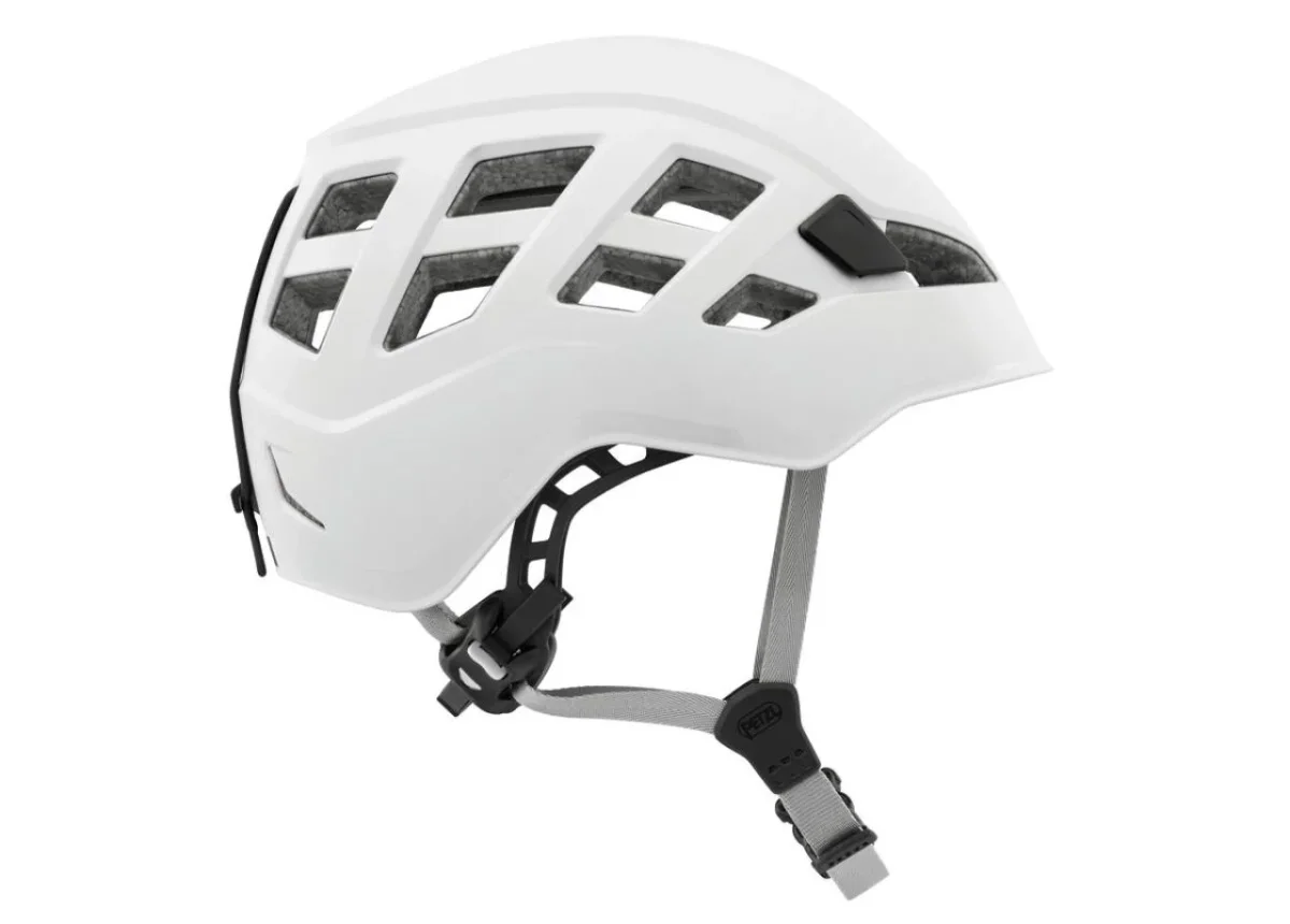 – Diseño envolvente, más bajo en la zona posterior, para una mayor protección contra la caída de piedras, los impactos laterales, delanteros y posteriores (sello TOP AND SIDE PROTECTION de Petzl).