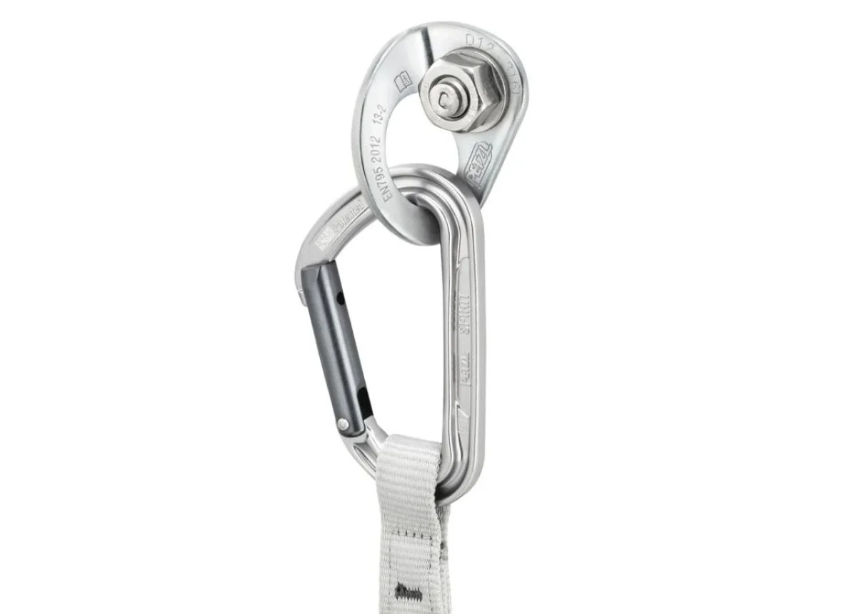 – La anchura del orificio permite instalar dos mosquetones simultáneamente.