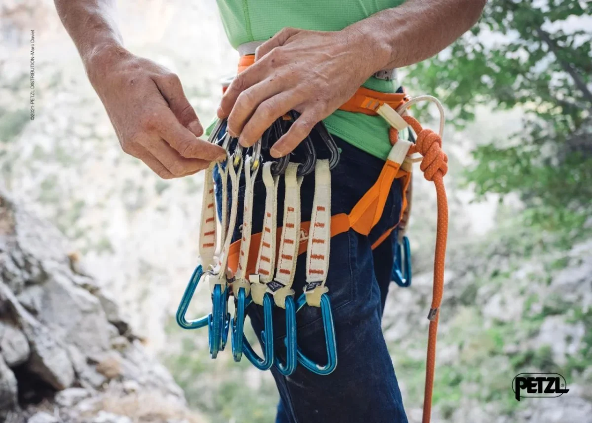 – Dos anillos portamaterial delanteros muy grandes rígidos para llevar mucho material y facilitar el enganche y desenganche de los mosquetones.