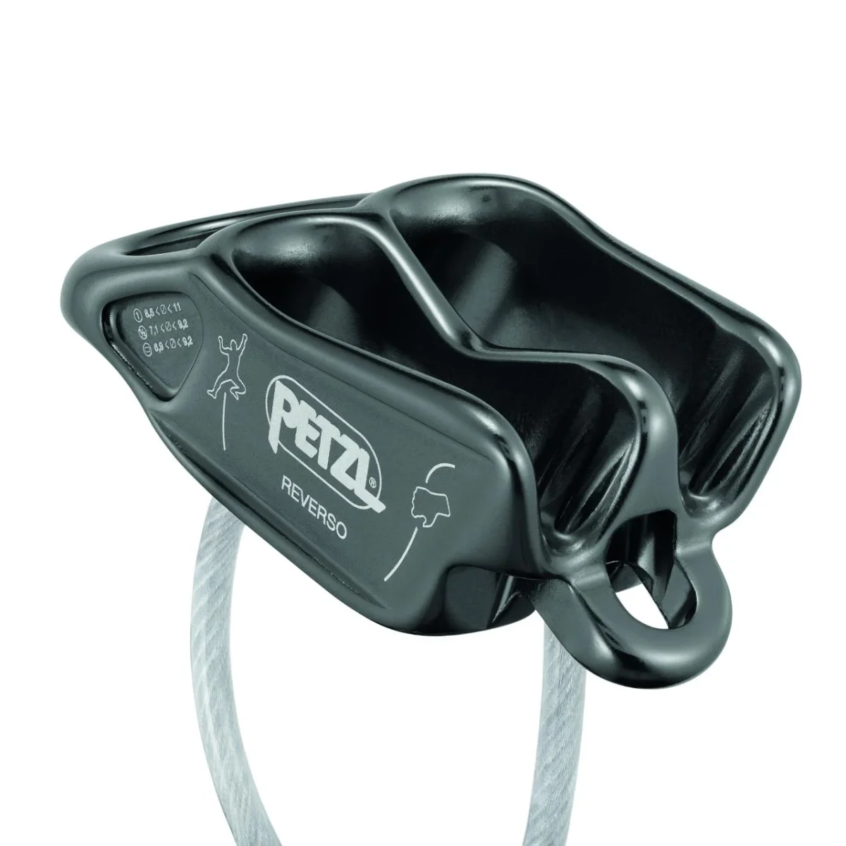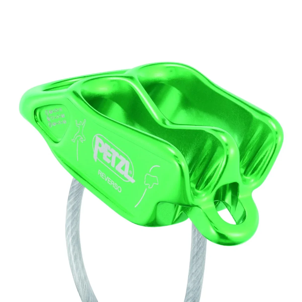 – Esquemas de instalación grabados en el asegurador (para el aseguramiento y el modo Reverso). - Polivalencia de utilización para la escalada deportiva en pared, la escalada de varios largos y el alpinismo: