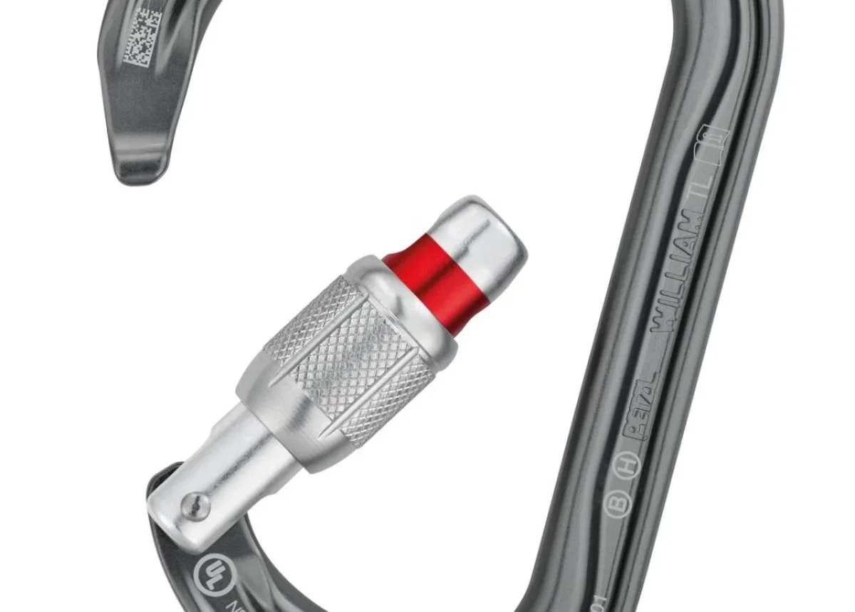 – SCREW-LOCK: bloqueo manual a rosca con indicador rojo visible cuando el mosquetón no está bloqueado. - Disponible también en versión color negro (versiones TRIACT-LOCK y SCREW-LOCK) y en versión color dorado (versiones TRIACT-LOCK y BALL-LOCK).