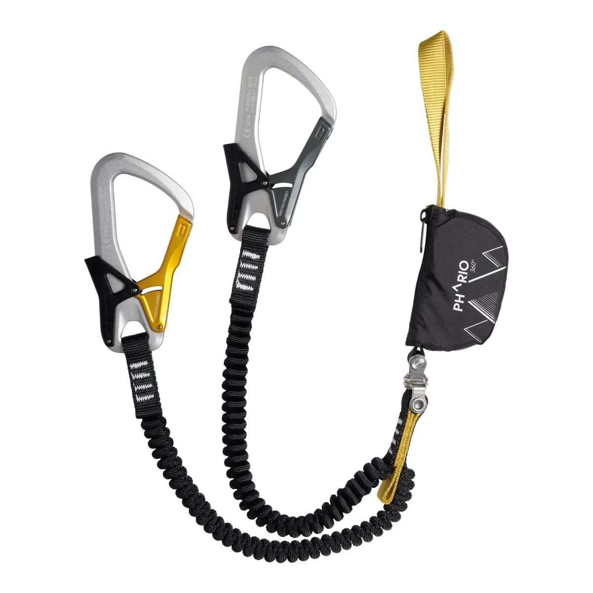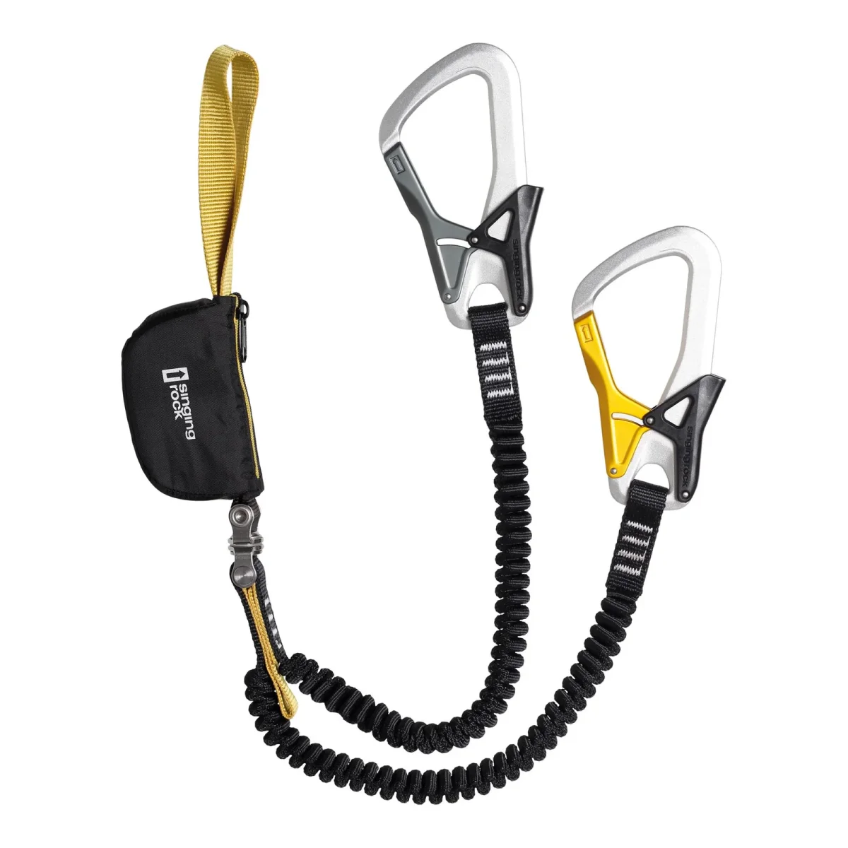 Amortiguador ligero y compacto con brazos elásticos para vías ferratas, recorridos de cuerdas y parques de aventura.
