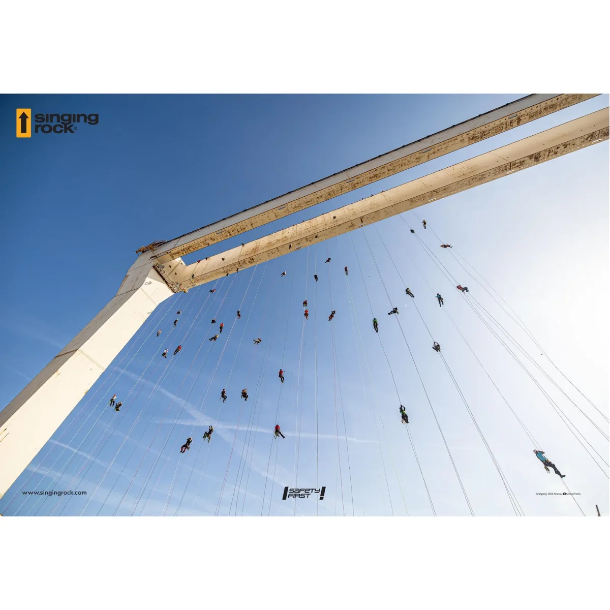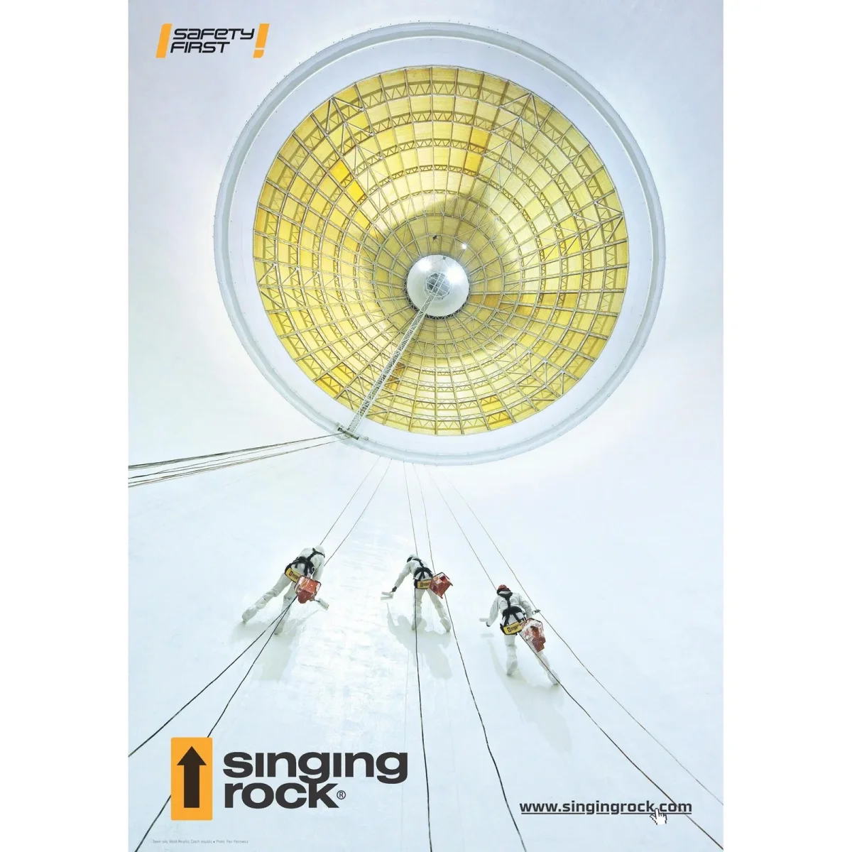 Carteles con imágenes del equipo SINGING ROCK en acción