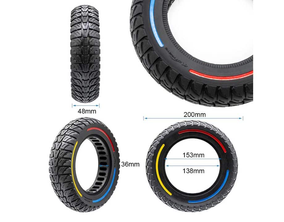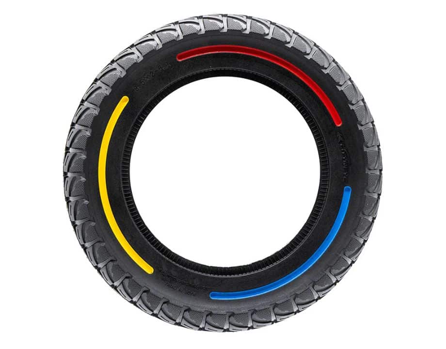 La rueda maciza 8,5×2-6,1 [Cityneye] en acabado TRICOLOR es una solución fiable, resistente y sin mantenimiento para patinetes eléctricos.