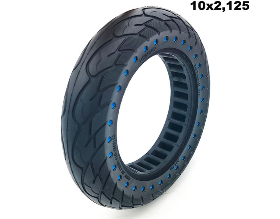 Rueda maciza ultraligera con dimensiones 10×2.125 y puntos azules