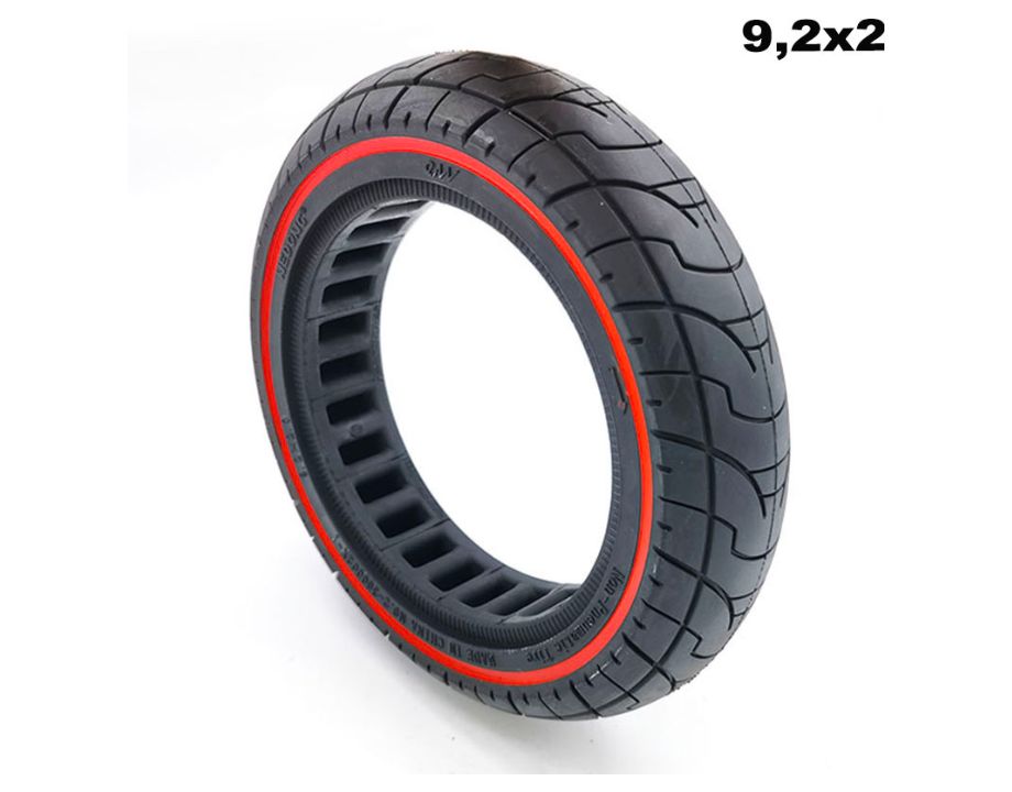 Gracias a este nuevo modelo exclusivo de ruedas macizas perforadas de 9,2 pulgadas el patinete mejora en estabilidad, velocidad y absorción de baches sin necesidad de instalar el kit de conversión.