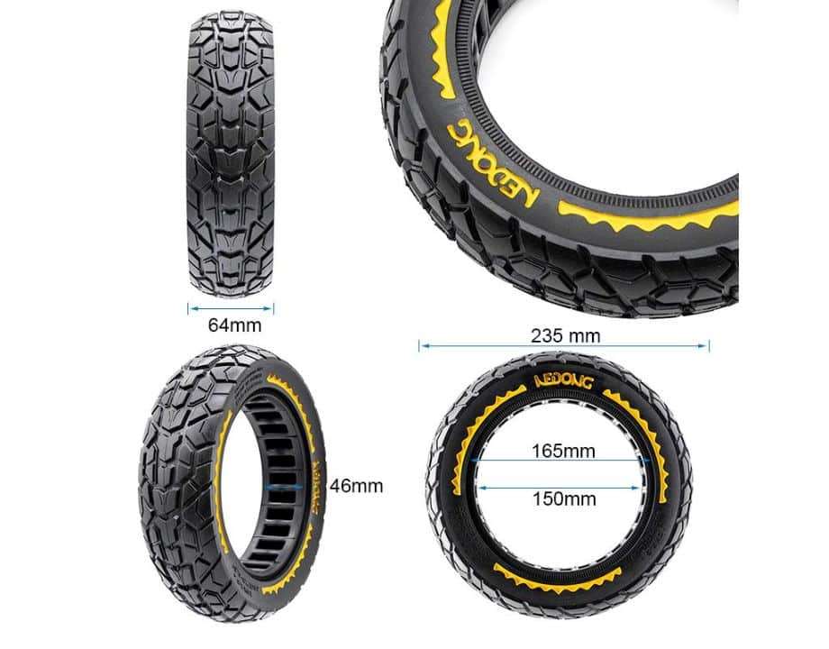 Neumático macizo ultraligero offroad de la medida 10×2,5 y bisel de 44mm y color amarillo de la marca Nedong.