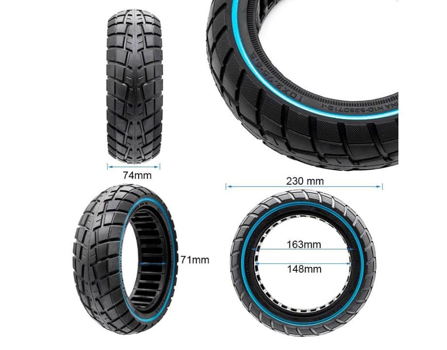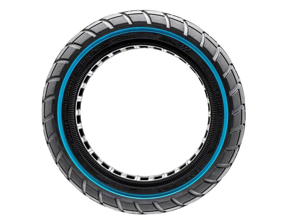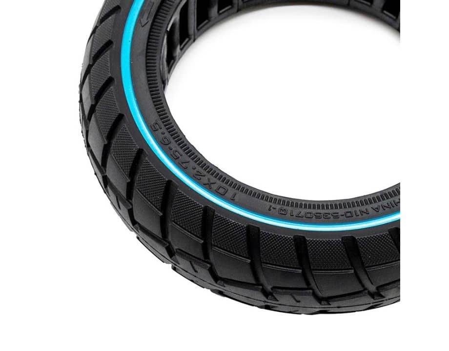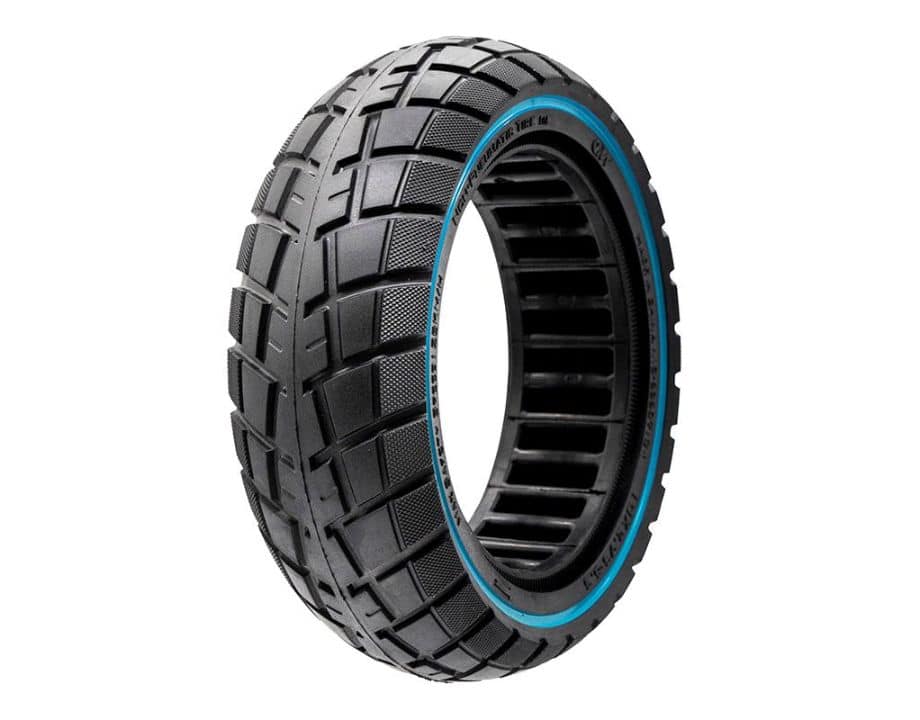 Neumático macizo ultraligero offroad con linea azul de la medida 10×2,75-6,5 y bisel 55 de la marca Ewheel.