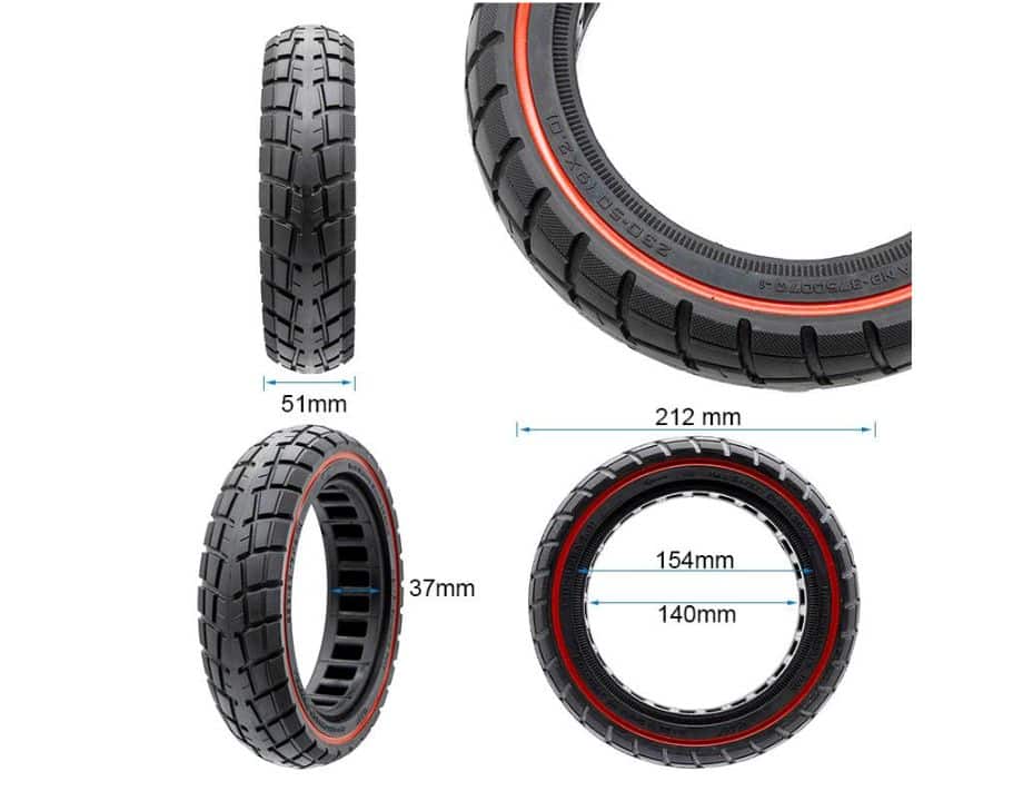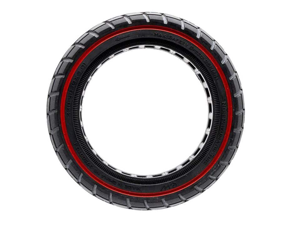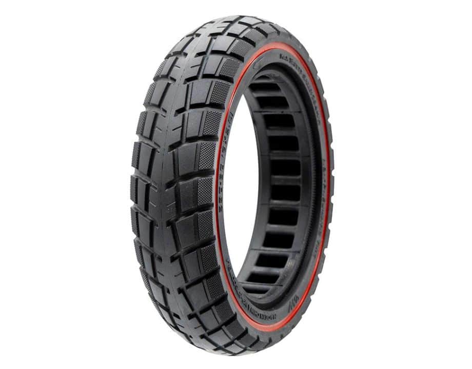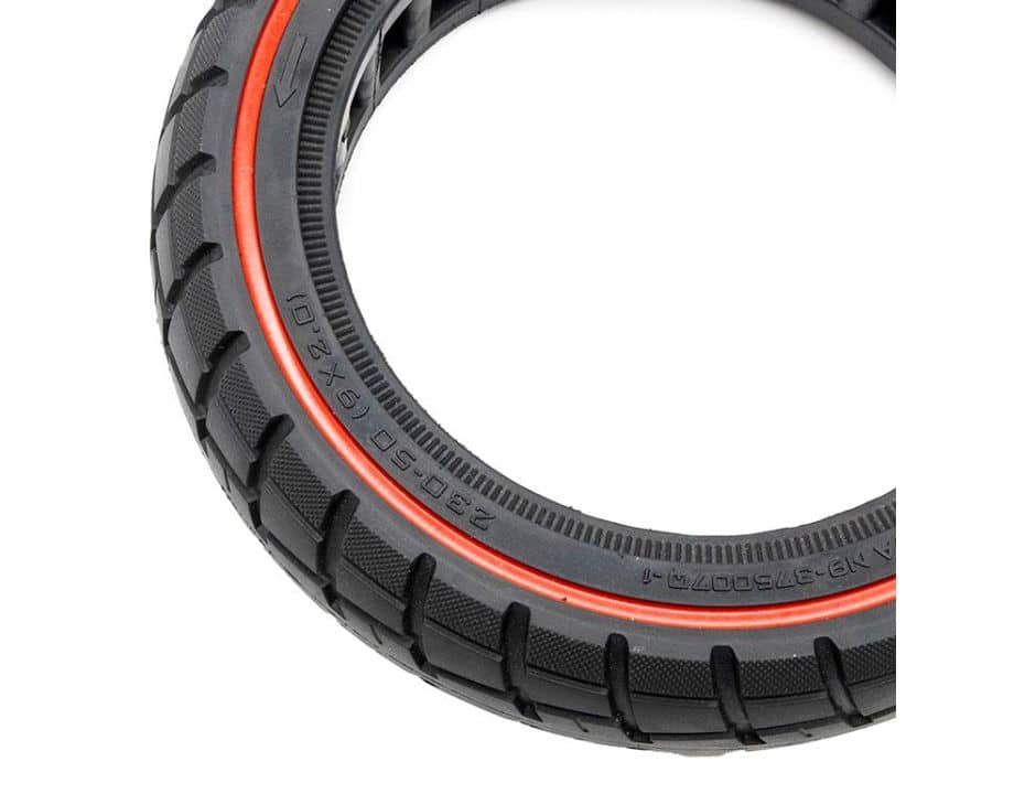 Neumático macizo ultraligero offroad de la medida 230×50 con linea roja de la marca Ewheel.