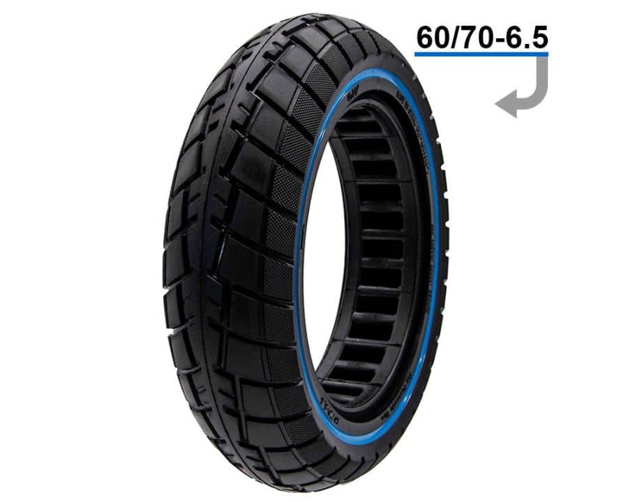 Rueda maciza ultraligera offroad con dimensiones 60/70-6,5 y linea azul de la marca Ewheel.
