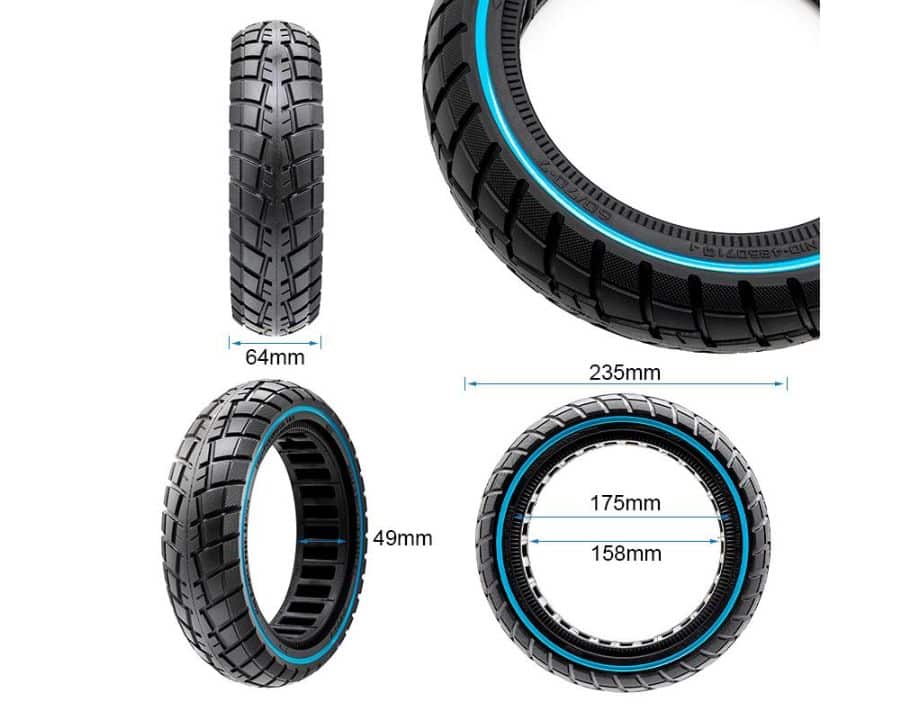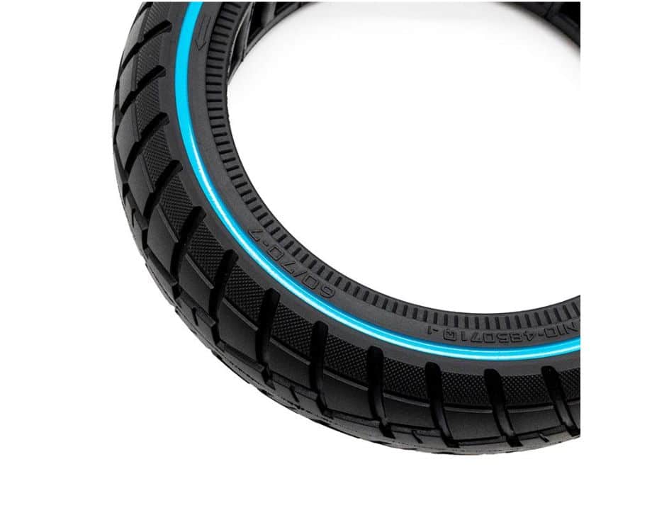 Neumático macizo ultraligero offroad con linea azul de la medida 60/70-7 con bisel de 50mm de la marca Ewheel.