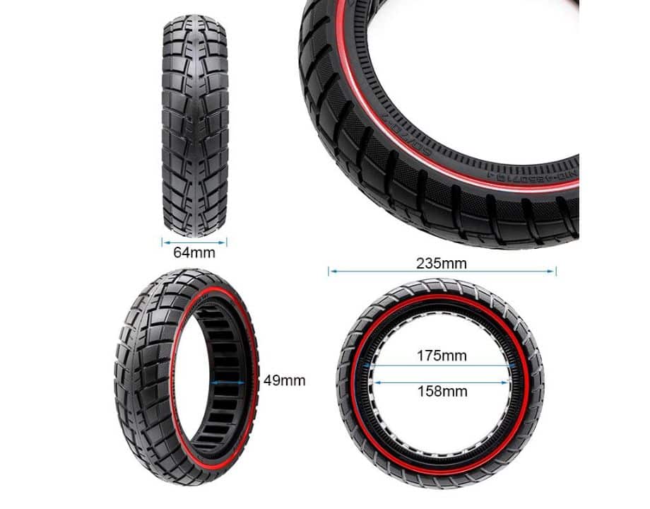 Neumático macizo ultraligero offroad con linea roja de la medida 60/70-7 con bisel de 50mm de la marca Ewheel.