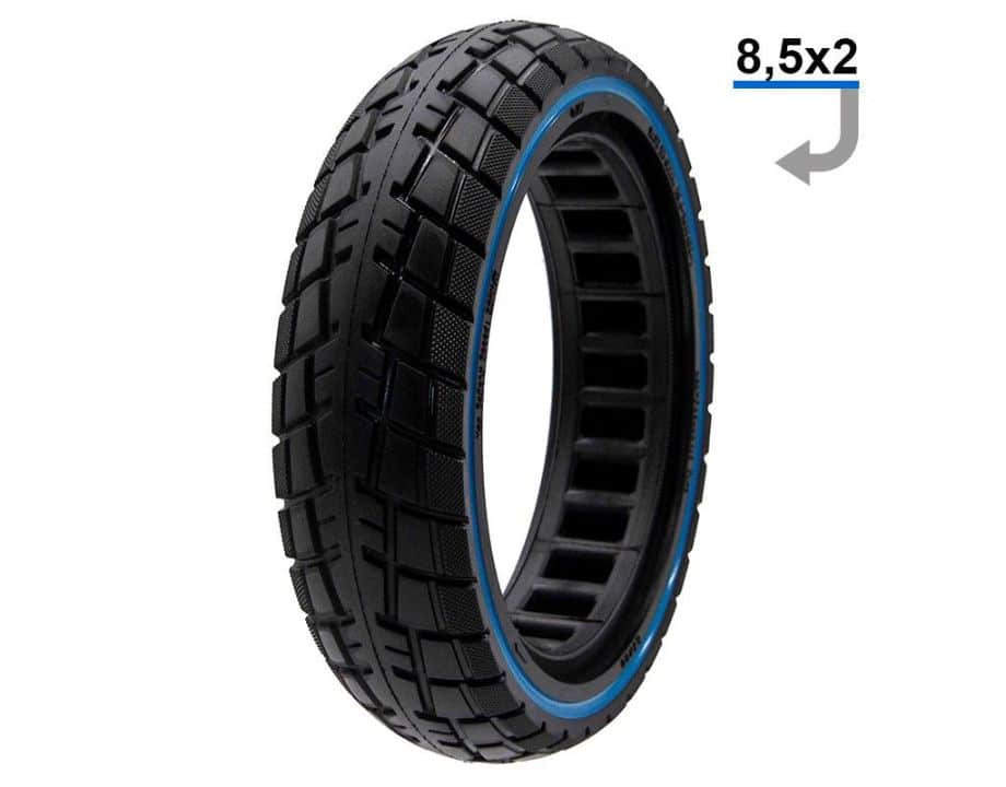 Rueda maciza ultraligera offroad con dimensiones 8,5×2-6,1 y linea azul de la marca Ewheel.