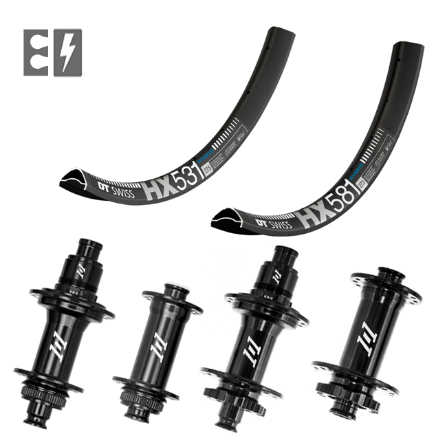 Las llantas DT Swiss HX han sido diseñadas específicamente para su uso en Ebikes. Reforzadas y con la unión soldada para una máxima fiabilidad, están preparadas para el trato más duro. la HX 531 tiene 30 mm de ancho interno, y la HX 581 tiene 35 mm ancho interno, perfectas para combinarlas con cubiertas de gran balón.
