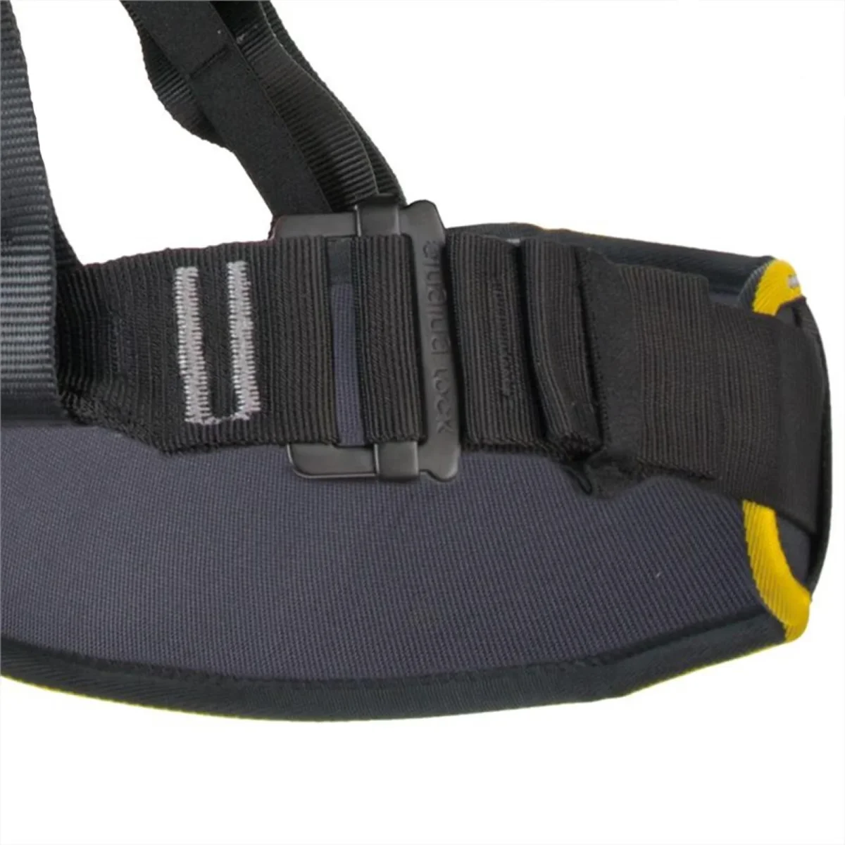 - las resistentes correas de la cintura están cosidas de manera que, en situación de trabajo normal, el peso del cuerpo es absorbido únicamente por el acolchado