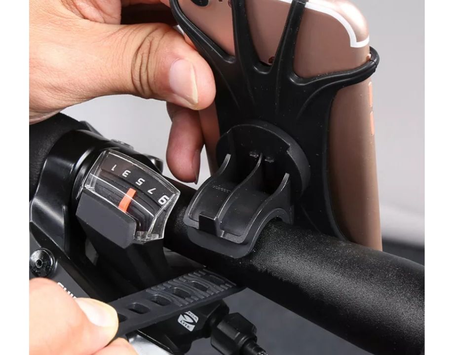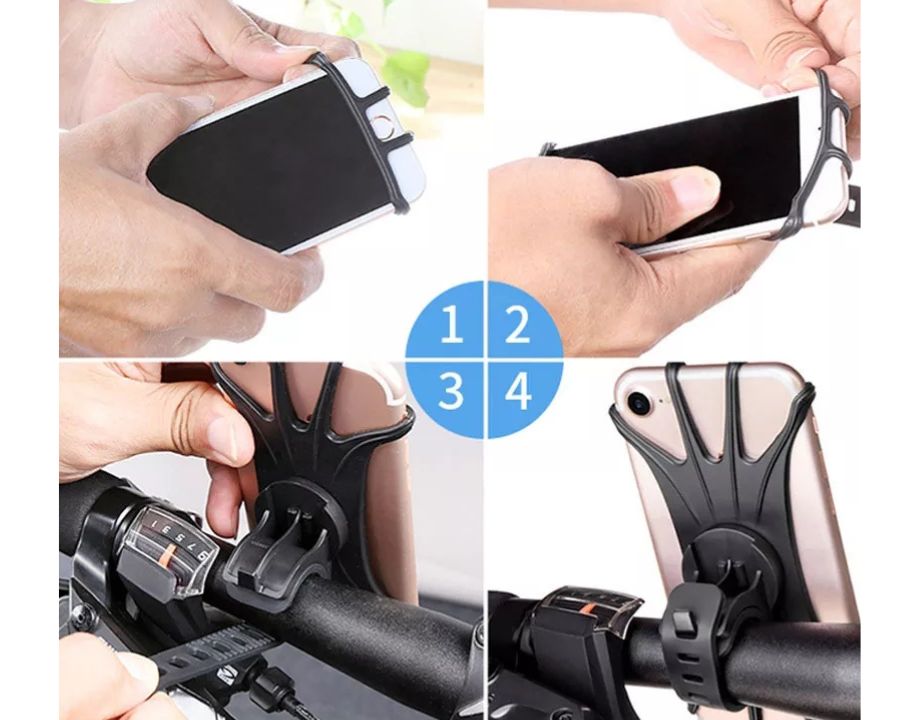 Soporte para móvil de silicona flexible válido para patinetes o bicicletas.