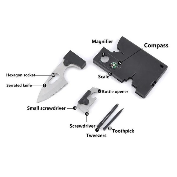 TARJETA MULTIHERRAMIENTA 10 EN 1 CON BRUJULA