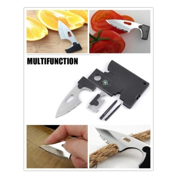 TARJETA MULTIHERRAMIENTA REALIZA 10 FUNCIONES BÁSICAS DE SUPERVIVENCIA EN 1 SOLA TARJETA ADEMAS CUENTA CON CUCHILLO, NO TE QUEDES SIN ELLA Y PÍDELA YA! ES MUY FÁCIL DE USAR Y TRANSPORTAR, YA QUE POR SU DISEÑO COMPACTO LA PUEDES LLEVAR EN TU CARTERA O BOLSA DE PANTALÓN Y ESTAR PREPARADO PARA CUALQUIER SITUACIÓN