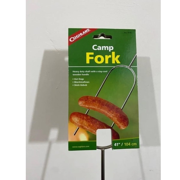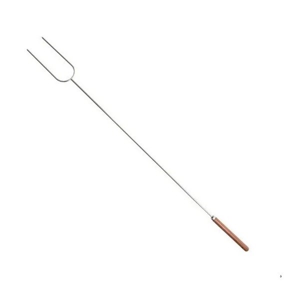 ESTE TENEDOR PRESENTA UNA CONSTRUCCIÓN DE ACERO CROMADO DE ALTA RESISTENCIA CON 2 PÚAS Y UN MANGO DE MADERA QUE ESTÁ DISEÑADO PARA MANTENERSE FRESCO MIENTRAS COCINAS MALVAVISCOS, BROCHETAS O SALCHICHAS SOBRE UNA FOGATA. MIDE 104 CM DE LARGO.