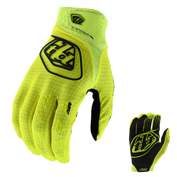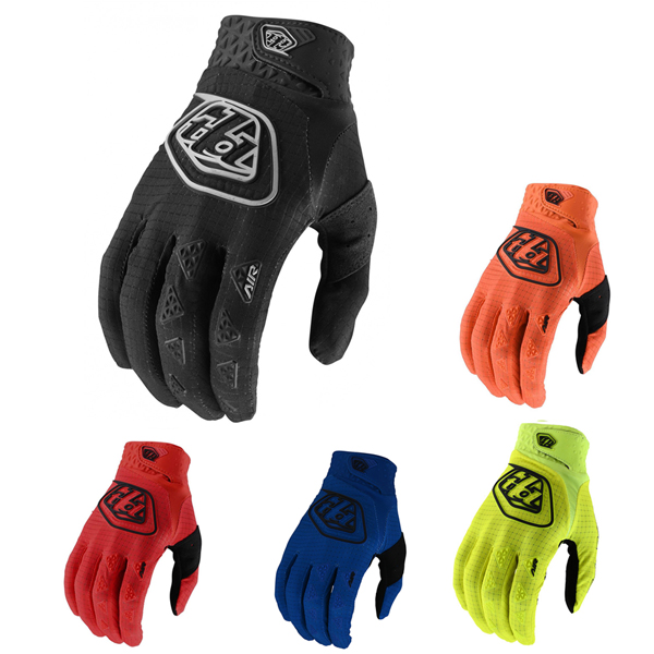 Los nuevos guantes Troy Lee Designs Air son ligeros y transpirables. Están fabricados con un puño moldeado por compresión y una palma de una sola capa, la cual está microperforada con láser para una mayor transpirabilidad en la zona. Esta micro malla perforada se usa para una mejor ventilación. Y para tener un mejor grip con las manetas de freno, los dedos índice y medio presentan impresiones en silicona de alta calidad.