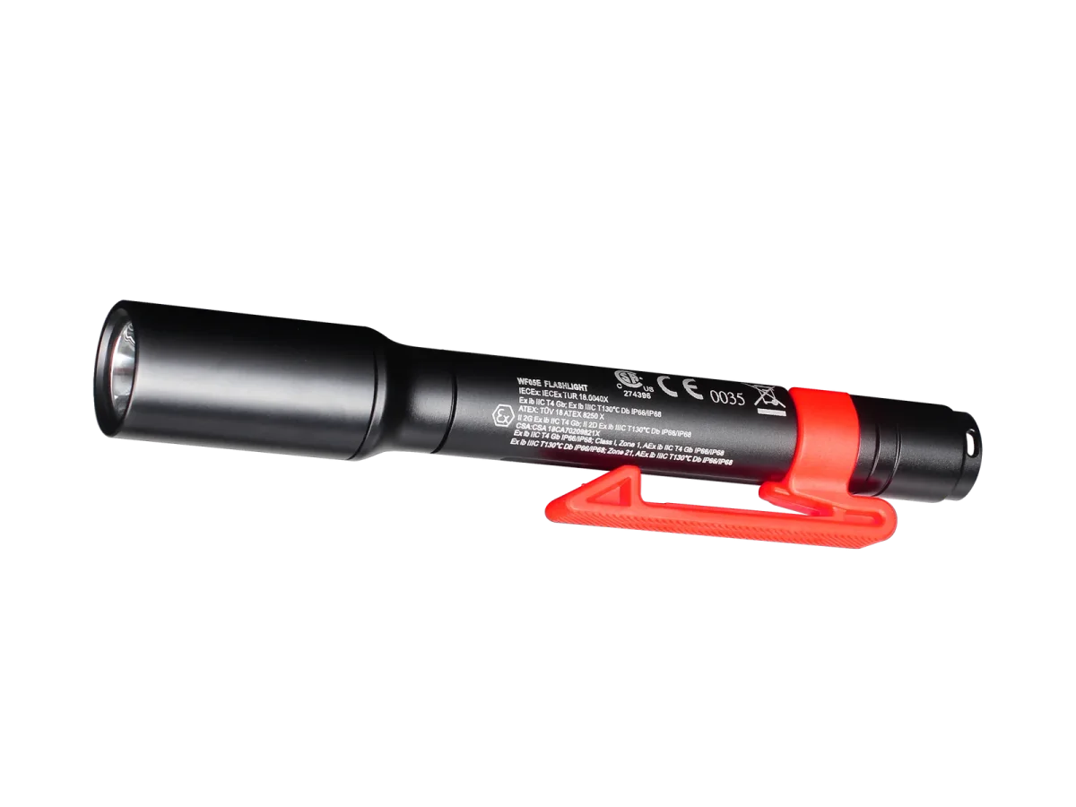La linterna Fenix WF05E es una linterna intrínsecamente segura, diseñada para todas las áreas con riesgo de explosión, excluyendo las minas subterráneas. Ha pasado las pruebas necesarias y está certificado por IECEx, ATEX y CSA. Por lo tanto, este producto se puede usar de manera segura en la Zona 1 y en la Zona 2, donde hay una mezcla de gases explosivos que pertenece a IIA, IIB y IIC; y se puede usar en áreas de polvo combustible: la Zona 21 y la Zona 22 también, como industrias petroleras, químicas y textiles, control de incendios, áreas metalúrgicas, estaciones y áreas de energía eléctrica, y plantas productoras de papel, etc.