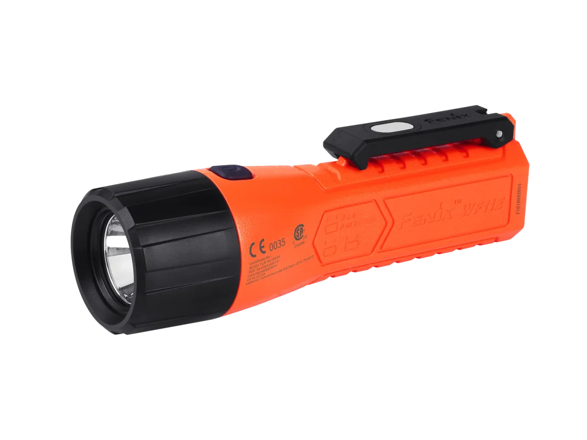 La Fenix WF11E es una linterna intrínsecamente segura con cola magnética y clip para poderla sujetar, con una potencia máxima de 200 lúmenes.